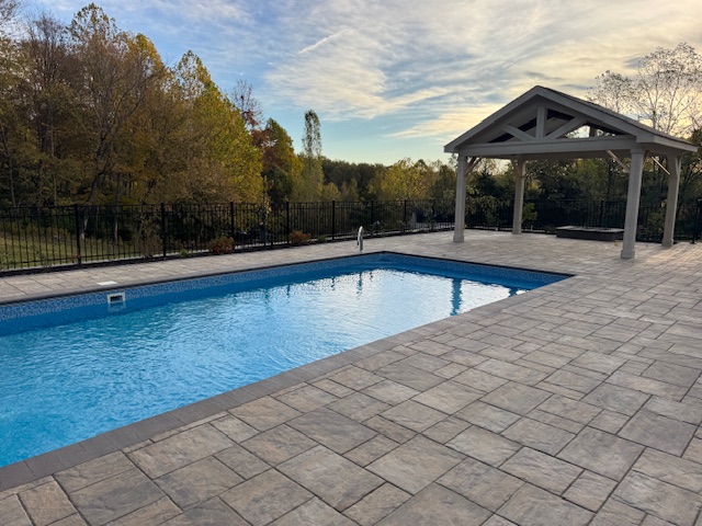 Full vinyl inground pool installation for a residential backyard — excavation, plumbing, electrical, and decking all handled in-house. Completed in 3 weeks.